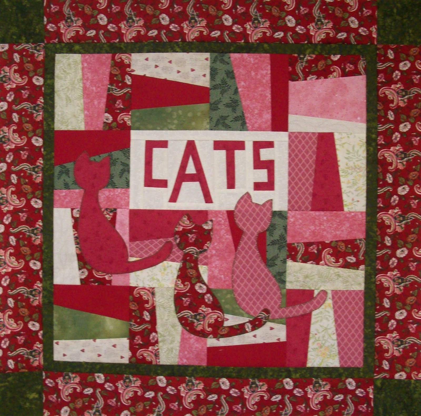 I already have one Rolling Stones (one of my favorite things) quilt, so I decided to make this quilt about CATS. I know how to make free-form pieced letters, courtesy of Tonya Riccuci: